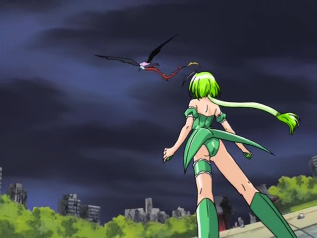 内気で大人しいけど、変身すると光沢テカテカで肩出しレオタードのセクシーコスチューム姿で戦うギャップが堪らないミュウレタス。 ザクロと並ぶスタイルの良さ、美脚を飾るロングブーツも堪らない。 ブーツアップや脚を狙われるピンチがもっと欲しかった。