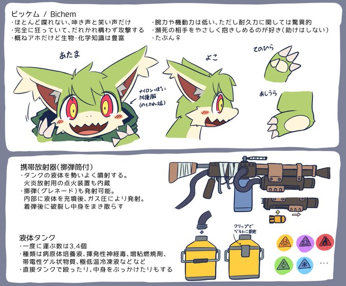 オリキャラ設定ができたので貼り貼り 死神と生物化学兵器がモチーフのビッケムちゃんです!