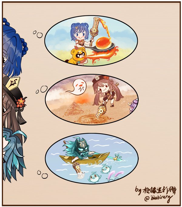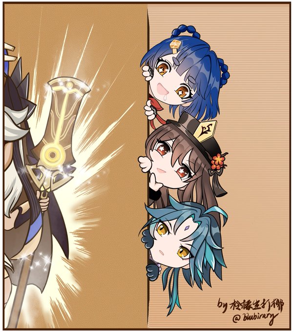 ThePowerpuffLiyue3C&their father neta ThePowerpuffGirls #HuTao #Ganyu #Xiao #zhongli #胡桃 #甘雨 #魈 #钟离 #原神 #GenshinImpact