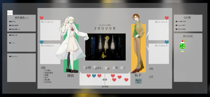 フタリソウサ『黒雲白雨の館にて』 PC/GM 王隠堂 創/れま PC/PL 黄雀 凩/弁さん ワ!凩ちゃんくんとコンバートした!!GM、本当にガバガバすぎたんですけど弁さんが優しかった…本当に助かるしRPが上手いよ……好物がクリームソーダとオレンジジュース?かわいい~~!!