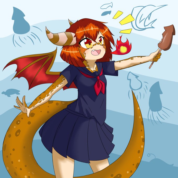 Sorry guys; There won’t be an #Inktober page tomorrow (Wed 21st) so here’s a repost of the first image I drew of Vari-Kama in April instead as a treat. #drawing #inktober2020 #digitalart #manga #dragon #mangagirl #cute #throwback