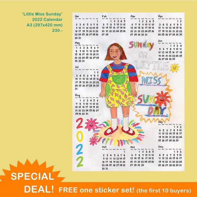 Order now! ปฏิทินปี 2022 มาแล้ววว 2022 Calendar: Little Miss Sunday edition - 230 THB/piece(รวมส่งลงทะเบียน) 🌞🧸🌈 พิเศษ! 10 แผ่นแรกแถมสติกเกอร์เซ็ต Little Miss Sunday ฟรี!! #blurdepeinture #calendar #2022calendar