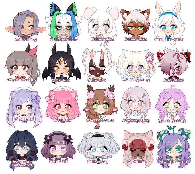 The first batch of these Chibi Head YCH commissions I've done over on DA! They're so fun and I love how they all look together!!! Characters all belong to their respective owners whose DA usernames are listed!