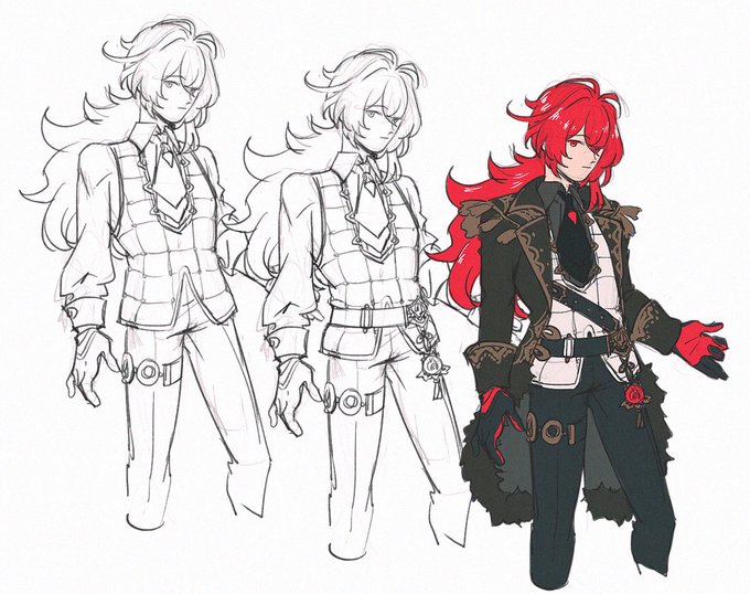 the belt coming from around his rib made no sense so I'll pretend it comes from his coat and clips into the waist belt lol. also wasn't sure if the quilted top was a vest but he has a dark shirt under it 🤔