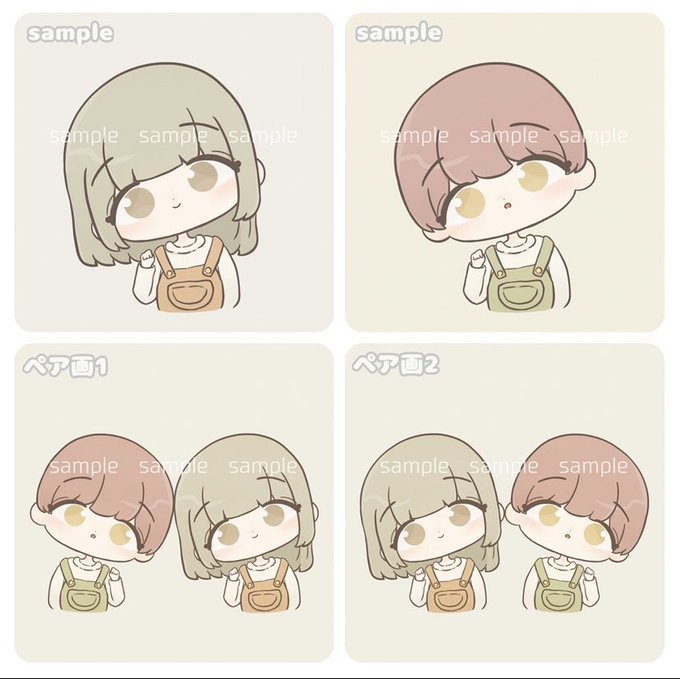 《❁⃘オーバーオール量産❁⃘》 1人×400円で、下書き無しだと1人×300円でご依頼受け付けています! ペア画にも出来ます🙆♀️ ご依頼、お待ちしています🙇♀️ #量産依頼 #ミニキャラ依頼 #ちびキャラ依頼 #イラスト依頼 #アイコン依頼 #ペア画依頼