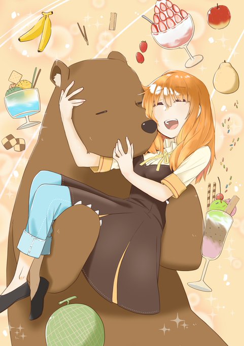 곰이랑 아가씨랑 파르페~ 예전에 그린거 리메이크해서 보여드려요!