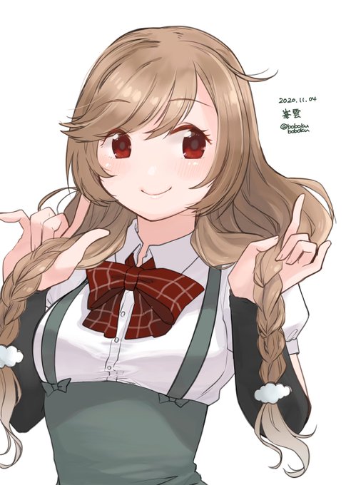 三つ編みにしてもらって喜ぶベイさん