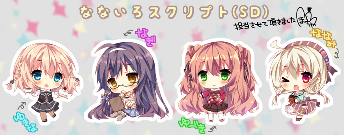 Timenauts様より冬コミ発売予定の同人ゲーム『なないろスクリプト』のヒロイン4人のSDを担当させて頂きました、よろしくお願いいたします…! http://t.co/g7Hwz8xk0Y