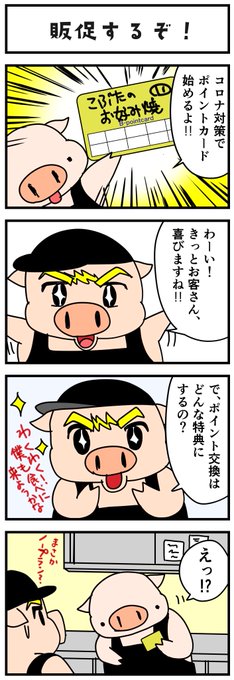 こぶた店長【vol.68】 またまた、おひさしぶりです!! こぶた店長もコロナで大変みたいです!! 「販促するぞ!」 #オリジナルイラスト #キャラクター #コミック #こぶた店長 #販促