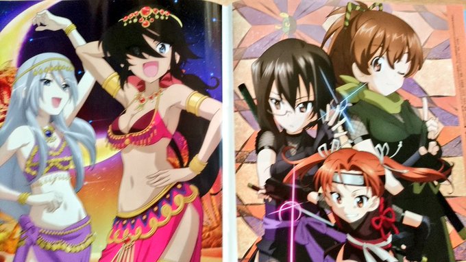 メガミマガジン4月号のルミ×ミカイラスト、過去のメガミマガジンOG×隊長イラストに比べると肌色成分少なめ‥かな? でも全員揃うので良かったです。#garupan