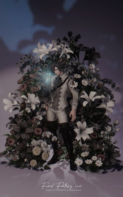 珀さんの美オスッテくん生け花してきた~!お花は白黒で、スクリーン染色と照明でいつもとすこし違う雰囲気に🫶先に全体と記念撮影をUPしちゃう!他は加筆できしだい上げていきます~モデルありがとうございました🫠💕赤魔AFは最高だな🫰