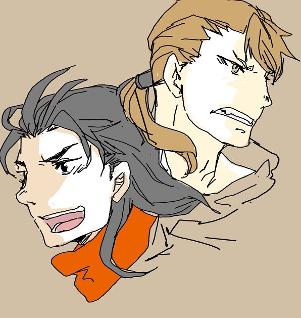 #リプきたキャラの顔だけ描く お題:ジムサとイスファーン お題ありがとうございます。そういえば描いたことなかったですジムザ。 に、似てな・・・