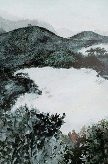 이건... 담요님께서 그려주신 연다로 미우의 연못 정경입니다... 산속 깊숙한 나라에 넓게 드리워진 연못이란 생각이 딱 들어서...그리고 요새 분위기와 맞게 좀 쓸쓸한 감도 드는 게 어쩜 이럴 수 있나 감격했었어요 8_8