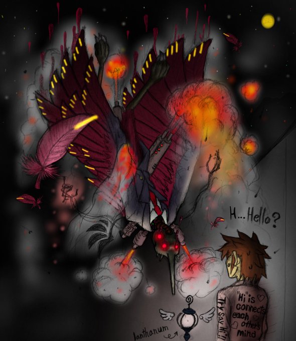 #オリジナル #怪奇生物 重力が逆にかかっていて、「上に落ちる」生物(^ω^)上に向けてスラスターを吹かして高度を保ってます。すごく生活しづらいだろうなぁ_(:3」z)_