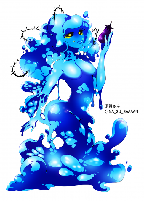 @NA_SU_SAAAAN フォロワー人外化 体内で冷やしたナスをくれるスライム娘で描かせていただきました!