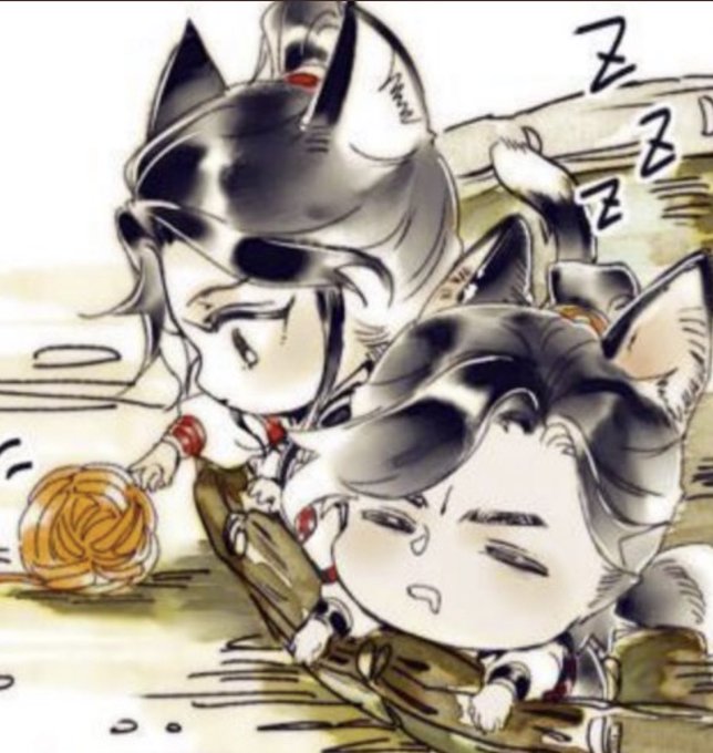 They’re so adorable, look at them! Mu Qing purring while playing with the yarn ball 🧶