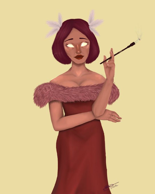Terminei de desenhar a minha fanart da Gwen de spiritfarer e queria ter feito um fundo melhor mas n tava conseguindo então foi esse meio capenga mesmo