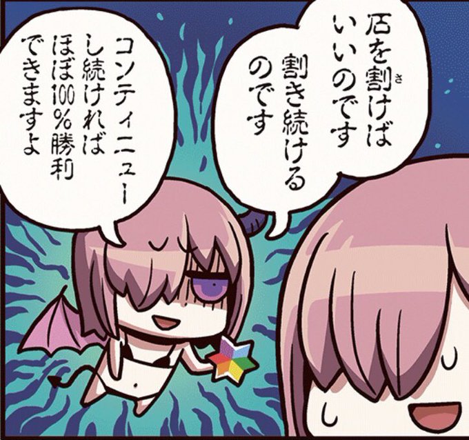 考えても見たまえ。石30個で召喚を回しても麻婆豆腐と馬(馬じゃない)が殆どなんだよ。だけど高難易度のコンテニューで使えば、なんとたったの石1〜2個で伝承結晶や聖杯が確定で手に入るんだぞ!どっちがお得な使い方か君にもわかるだろ。場合によっちゃ令呪3画で無料なんだぞ!