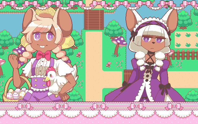 i don't think i posted a picture of my rabbit girl from the game i'm working on yet, but here she is wishing you a happy easter 🐰❤️