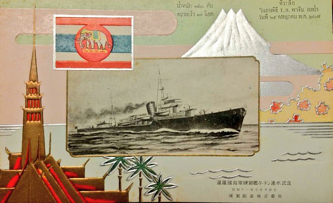 日本の造船所で作られたタイ海軍艦艇の進水記念葉書シリーズ。