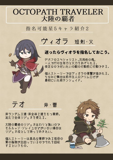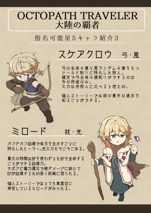 【オクトラ大陸の覇者】もうすぐ1周年ということで初期☆5の指名チケットが配布されているので指名可能キャラのざっくりとしたおすすめポイントを書きました。ストーリーがまだ途中だったり所持キャラが少ない人向け。個人ストーリーの微バレあり。 #大陸の覇者アート