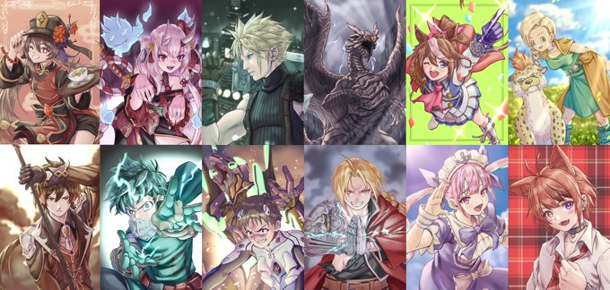 8月まとめ。 練習で色んな作品のキャラクター描いてます😀 #イラスト好きさんと繋がりたい #絵描きさんと繋がたい