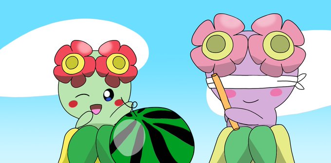 #ポケモン版深夜の真剣お絵描き60分一本勝負 ←キレイハナ?「あたしキレイハナ!今日もみんなの心を満開にするよ🌸」 →キレイハナ「メタモン!?エイプリルフールはもう終わっちゃうよ💦」