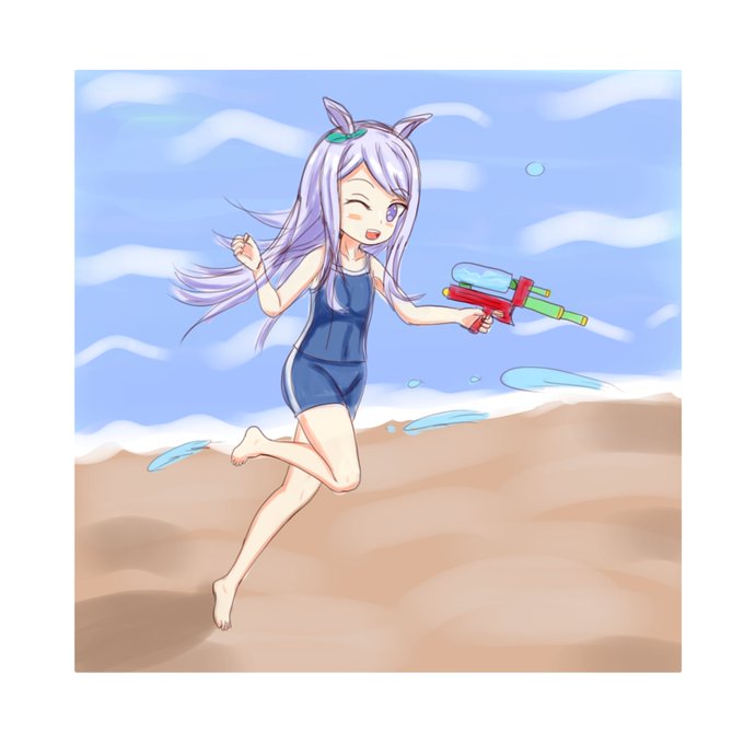 ゆうがたウマ娘らくがき 浜辺に水鉄砲をしに行ったメジロマックイーン