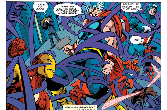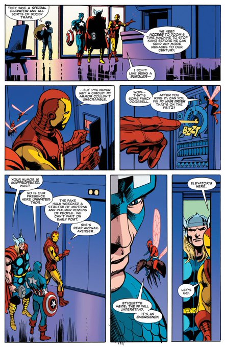 Avengers: War Across Time (2023) #2 読みました…急ぎな為にFFの本拠地バクスタービルへ彼らの留守中にお邪魔しますアベンジャーズ、しかしセキュリティシステムが作動して… ソー「ぬるぬると気色の悪い怪物め!」 ピム「これはスライムじゃないよ、ソー…これは、」 ワスプ「説明とかは後にして」