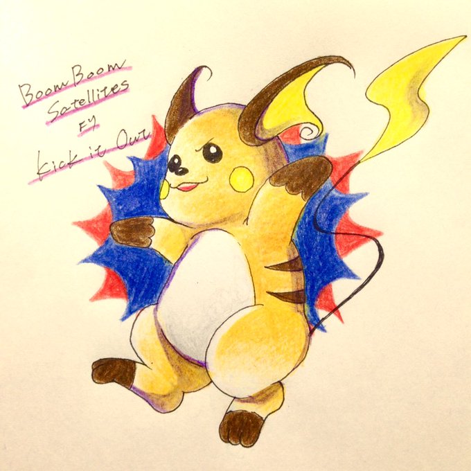 【 @SENRI_electric 】ライチュウ描いたよ。ポケモンとか初めてだから、気に入らなかったら描き直すよ #リプきたキャラx自分好きな曲の絵かく