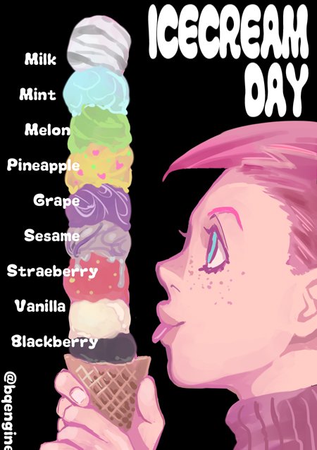 お題「5月9日:アイスの日」種類は適当です 正確に言うとドッピオが食べたのはブラックベリーとバニラだけですね あと全部護チが… #暗チ版深夜の真剣お絵描き60分一本勝負