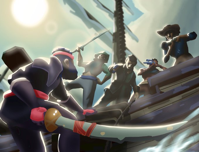 Wanted to make an artwork of @Blurbstv in his favorite scenario in Sea of Thieves: getting ladder camped by a whole galleon. 😁