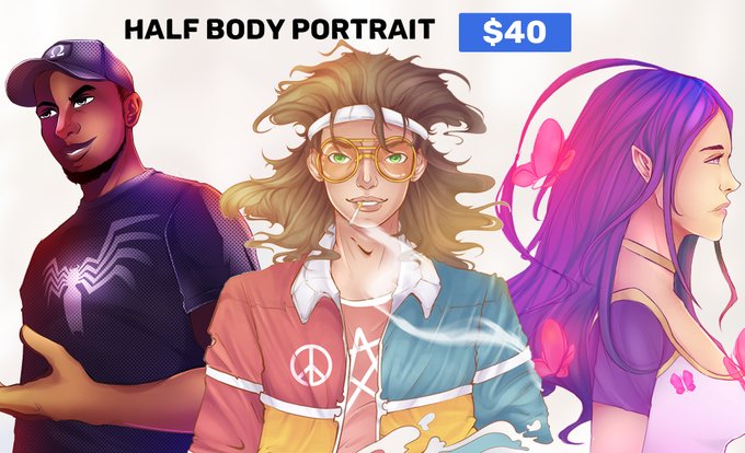 I DO ANIME COLORFULL PORTRAITS JUST 20-25$ EVERYTHING, HEAD,HALF FULL BODY