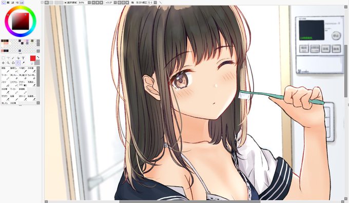 #絵を彩度100にすると超派手 隠し味としてうっすら入れてる色とか浮かび上がってなんか面白い!
