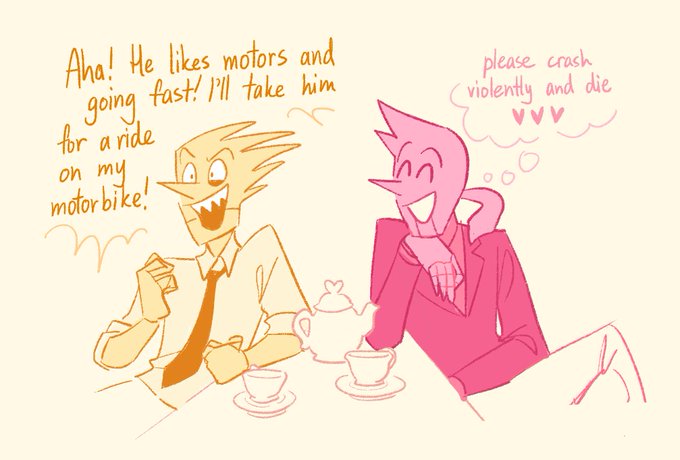 Avi, orange hair, and Link, green hair, belong to @PUKESEVEN