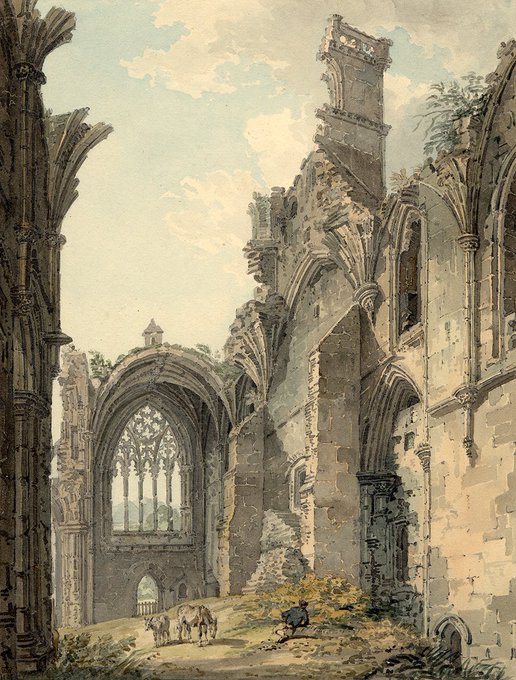 Girtin often painted watercolours of abbeys and rural scenes. This picture of Melrose Abbey in the Scottish Borders was made when the artist was just 20 https://t.co/HPKT72lPxs