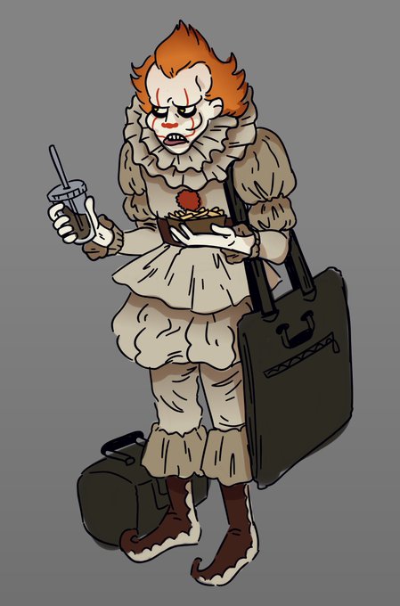 An inside joke w/ me and my friends is that Pennywise lives in the sewers beneath our art college and he is a part of our friend group but we all hate and bully him. So BEHOLD! Pennywise M*ore!AU. Please note the boat of fries, portfolio bag, and tackle box 🎨😂