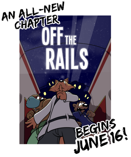 After a long break, the first page of Off the Rails drops NEXT WEEK! Git your bags ready!