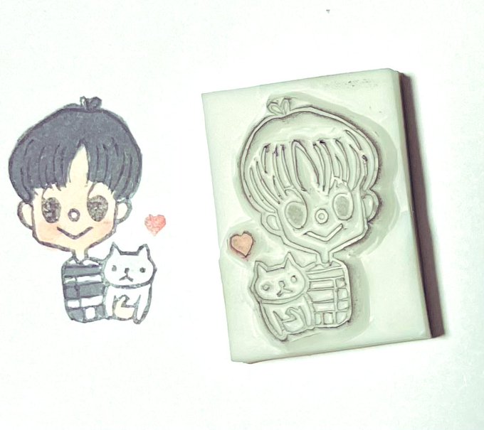 おテムとクンちゃん 笑顔のおテムにニコニコしながら彫りました😊 #Taemin #SHINee #消しゴムはんこ #ほっこり❤️