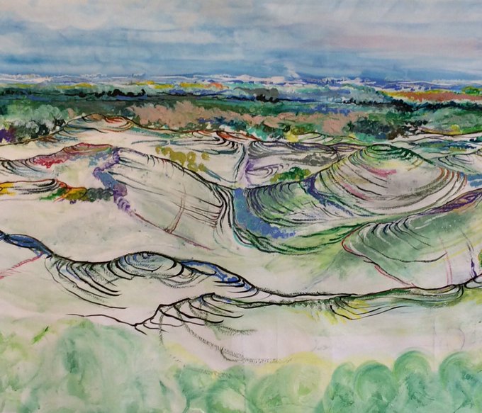 Last day of exhibition. Lily Piper won our @BrutonSchool student award for this huge piece-Towards the Tor #Somerset