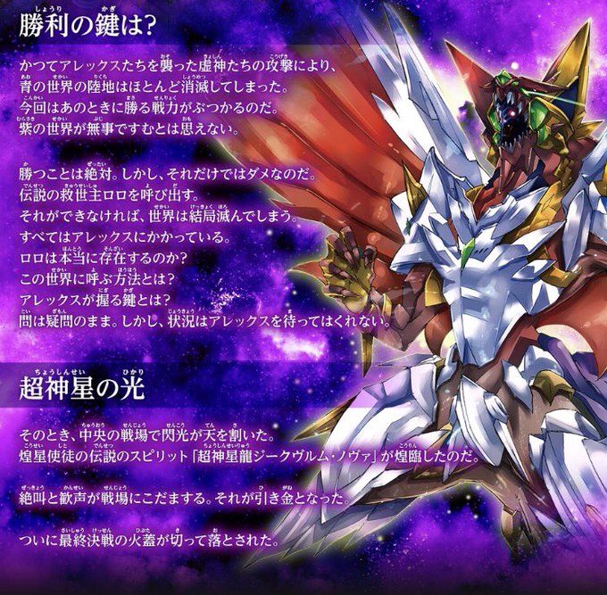 シリーズ最新弾『煌臨編 第4章 選バレシ者』は1/27発売!世界観ページを更新しましたので、リンク先にてご一読ください。アレックスたちの最終決戦、遂に伝説のスピリットが煌臨!