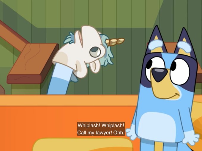 Quite the response there, Bluey! (Bingo is speaking right after Bluey’s “oh, what?”)