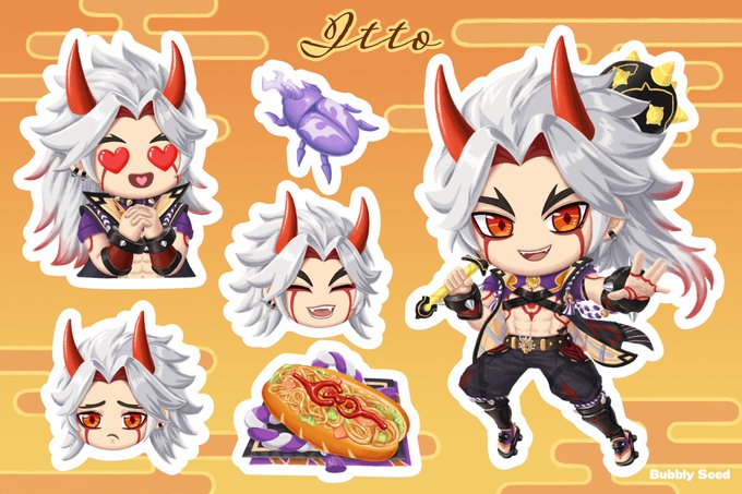 Itto sticker sheet 💗 Are u an Itto main? 😁 Sticker sheet is in our current Genshin merch kickstarter campaign 😊 Link in profile