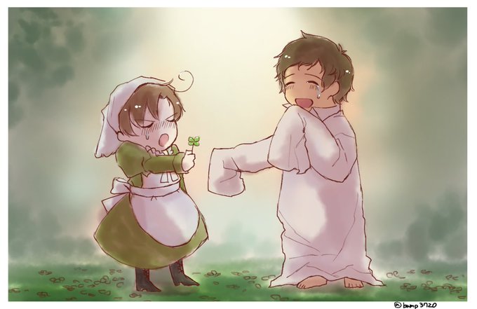 #APHコンビ版深夜のお絵描き60分一本勝負 @hetaknb おやぶんこぶんで四つ葉のクローバー🍀