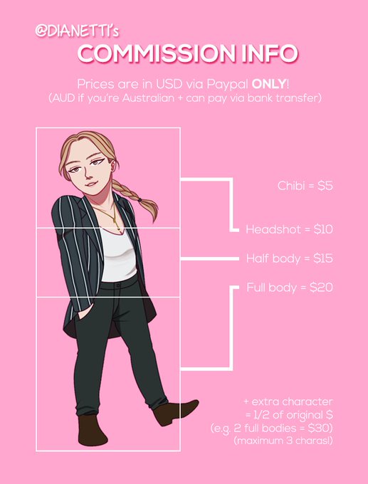 hi guys! so i’ve decided to start opening commissions bc the struggle between a part-time job + uni is just 2 much 4 me so here we are! this is my 1st time handling comms so pls be patient/bear w me :’)