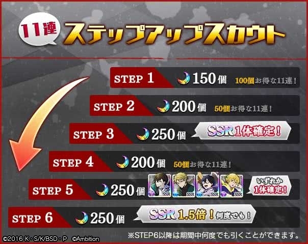 STEP5では、4体のSSR十五夜キャラクターうち、いずれか1体以上が確定で獲得できるスカウトです! #bungomayoi