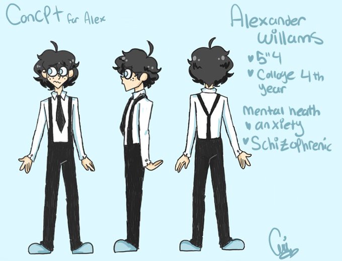 This is concept art for the main character in a new animation I'm going to be working on. It's for a contest called Directing Change. I chose the mental health awareness category. More concept art to come.