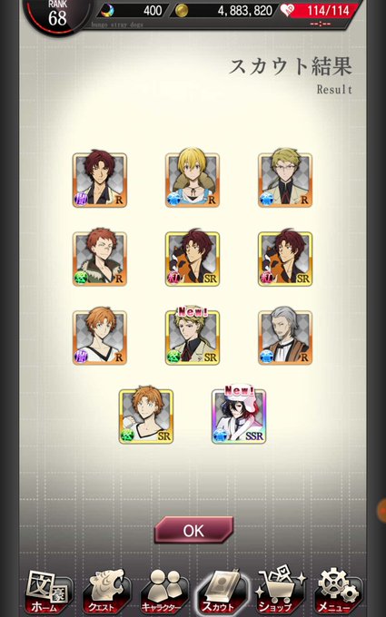 スカウトチケットでSSRの太宰さんと樋口さん きたぁぁーー! 太宰さんは11連スカウトの時にきてくれたから被ったけど樋口さんは嬉しい! #bungomayoi