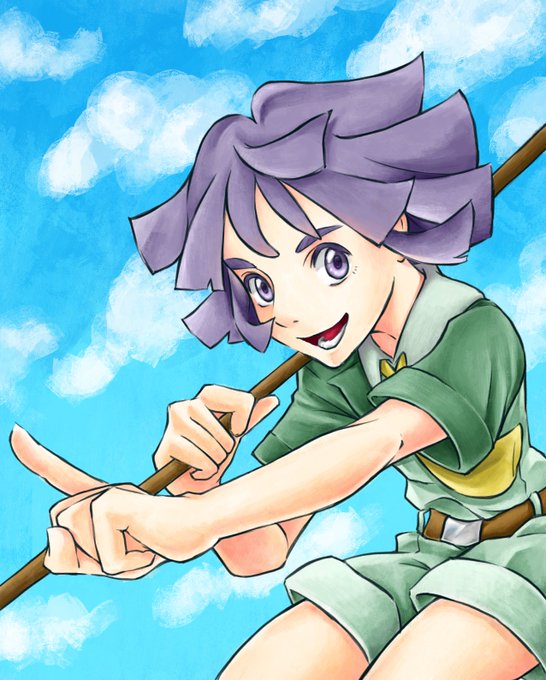 ツクシくん練習!眉毛太めの子が好きです♪ 戦闘カットインぽいのと、青空の下虫取りにいそしむツクシ君です。お納めください。