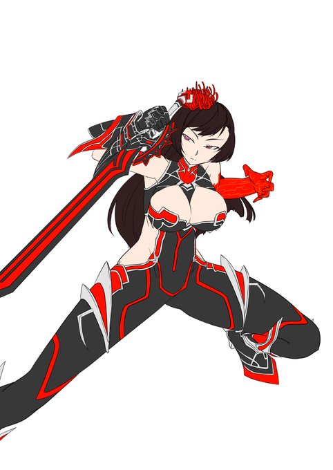モードレッド描きました。 色塗りはまだ適当にバケツ掛けてエフェクト載っけただけなのでこれから改良していこうと思うんですが、 未熟者なので、こういうやり方あるよ!というのをどなたか教えていただけると嬉しいです。